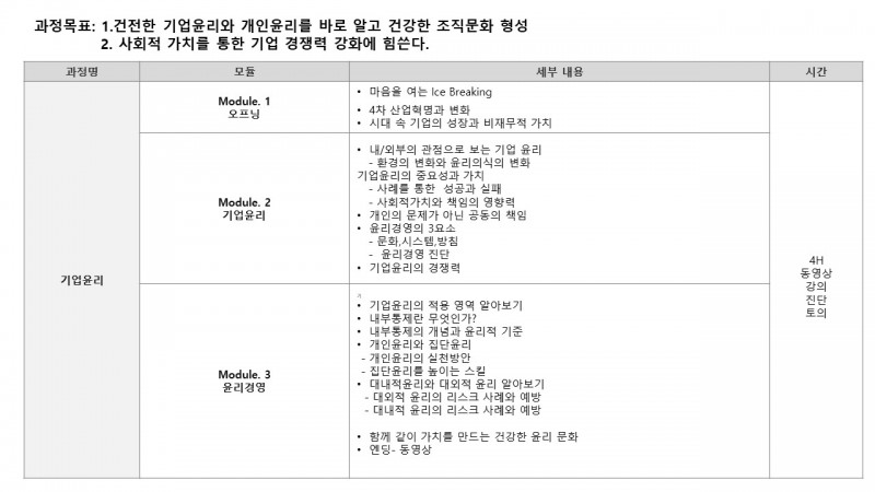 이런 시점에 기업윤리 경영교육은 매우 필요한 교육입니다.